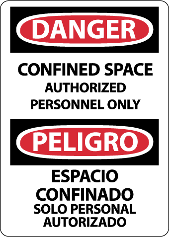 Danger, Confined Space Authorized Personnel Only, Bilingual, 14X10, .040 Alum