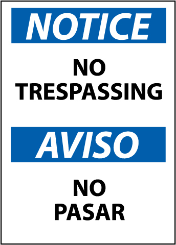 NOTICE, NO TRESPASSING BILINGUAL, 14X10, RIGID PLASTIC