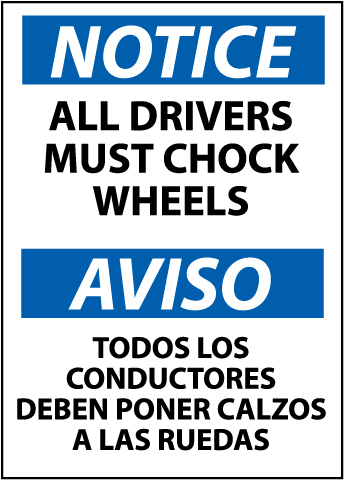 NOTICE, ALL DRIVERS MUST CHOCK WHEELS BILINGUAL, 14X10, .040 ALUM