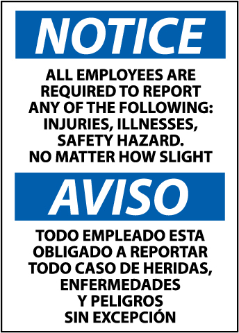 NOTICE, ALL EMPLOYEES ARE REQUIRED TO REPORT..(BILINGUAL), 20X14, PS VINYL