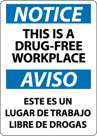 NOTICE, THIS IS A DRUG-FREE WORKPLACE, BILINGUAL, 14X10, RIGID PLASTIC