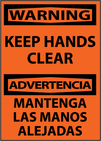 WARNING, KEEP HANDS CLEAR BILINGUAL, 14X10, RIGID PLASTIC