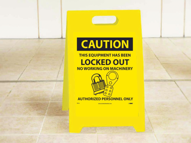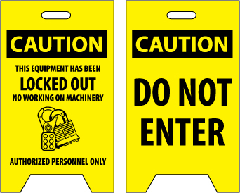 NMC, FS13, 19" x 12" Double Sided Floor Sign w/Legend: "Caution This Equipment Has Been Locked Out. . .Caution Do Not Enter"