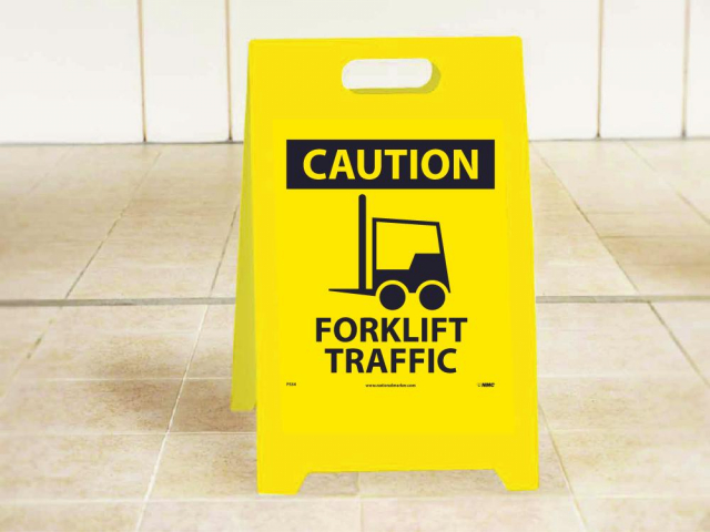 NMC, FS34, "Caution Forklift Traffic/No Pedestrian Traffic" 19" x 12" Double-Sided Floor Sign, Corrugated Plastic