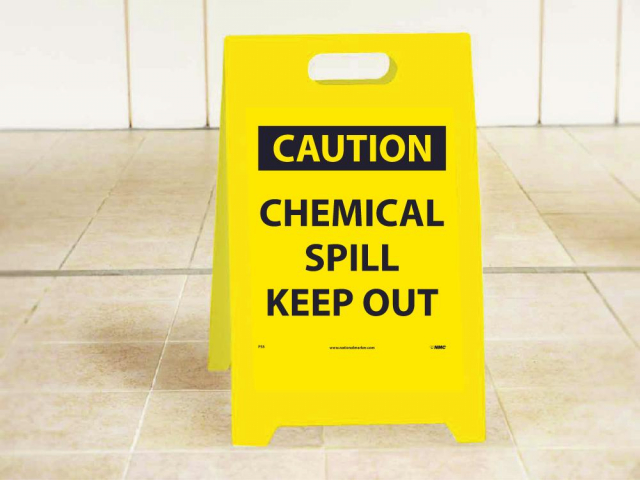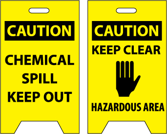NMC, FS5, 19" x 12" Double Sided Floor Sign w/Legend: "Caution Chemical Spill Keep Out Caution Keep Clear .."
