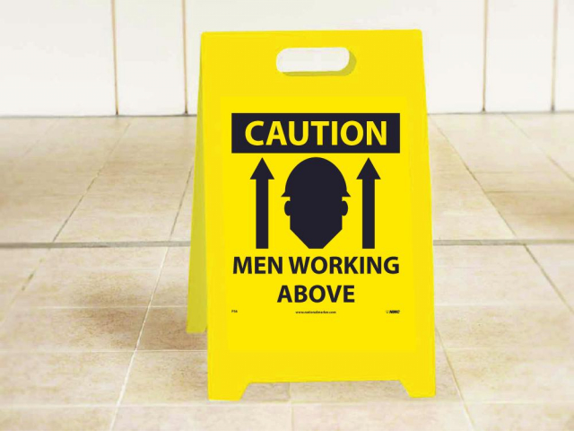 NMC, FS6, 19" x 12" Double Sided Floor Sign w/Legend: "Caution Men Working Above, Caution Men Working Below"