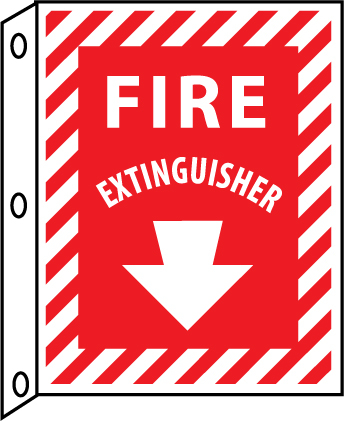 NMC, FXFMA, 12" x 9" Fire Sign w/Legend: "Fire Extinguisher (Dbl Faced Flanged)", Aluminum