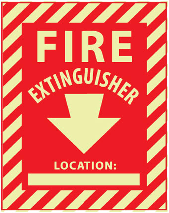 NMC, GL127P, 12" x 9" Fire Sign w/Legend: "Fire, Fire Extinguisher Location: ____", PS Vinyl Glow