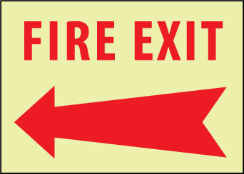NMC, GL137RB, 10" x 14" Fire Sign w/Legend: "Fire Exit, Left Arrow"