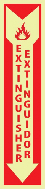 NMC, GL175R, 18" x 4" Fire Sign w/Legend: "Fire, Fire Extinguisher Bilingual", Rigid Plastic Glow