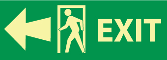 NMC, GL307P, 5" x 14" Fire Sign w/Legend: "Exit (w/ Door and Left Arrow)", PS Glow