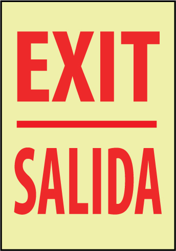 NMC, GL30RC, 20" x 14" Fire Sign w/Legend: "Exit (Bilingual)", Glow Rigid