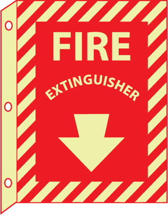 NMC, GLTV20, 12" x 9" Flange Sign w/Legend: "Fire Extinguisher", Plastic Flanged Glow