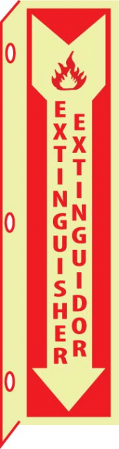 NMC, GLTV45, 18" x 4" Flange Sign w/Legend: "Fire, Extinguisher Bilingual", Plastic Flanged Glow