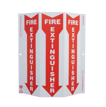 NMC, GW4052, 12" x 9" Green at Work Sign w/Legend: "Tri-View Slim, Fire Extinguisher", Recycle Plastic