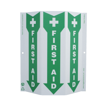 NMC, GW4056, 12" x 9" Green at Work Sign w/Legend: "Tri-View Slim First Aid, Graphic", Recycle Plastic
