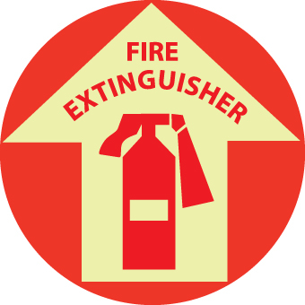 NMC, GWFS10, 17" Dia Floor Sign w/Legend: "Glow Walk on, Fire Extinguisher"