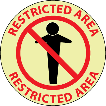 NMC, GWFS11, 17" Dia Floor Sign w/Legend: "Glow Walk on, Restricted Area"