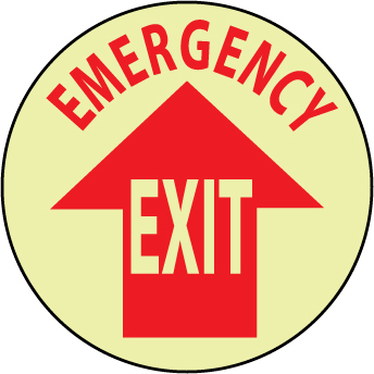 NMC, GWFS25, 17" Dia Floor Sign w/Legend: "Walk on, Emergency Exit", Glow