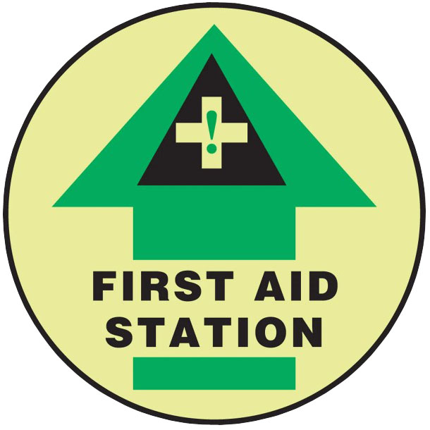 NMC, GWFS6, 17" Dia Floor Sign w/Legend: "Glow Walk on, First Aid"