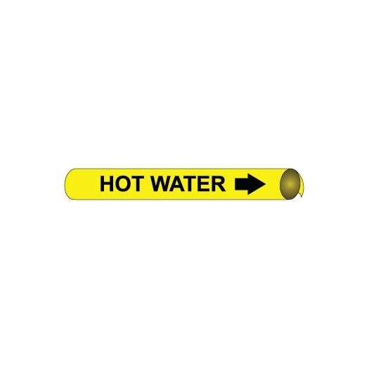 PIPEMARKER STRAP-ON, HOT WATER B/Y, FITS OVER 10" PIPE