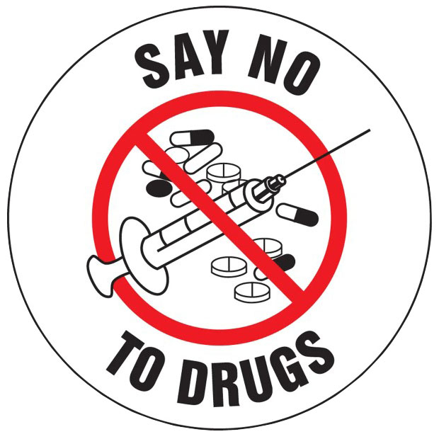 NMC, HH29, 2" x 2" PS Vinyl Hard Hat Emblem w/Legend: "Drugs"