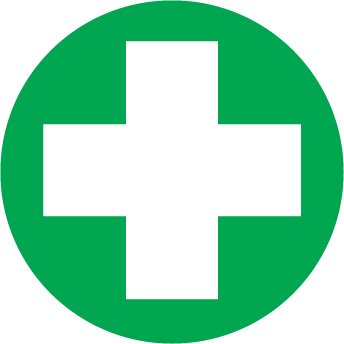 NMC, HH30, 2" x 2" PS Vinyl Hard Hat Emblem w/Legend: "First Aid Graphic"