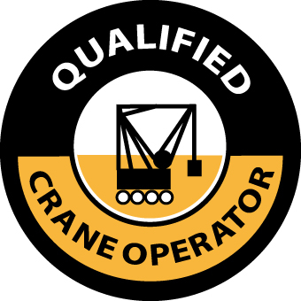 HARD HAD EMBLEM, QUALIFIED CRANE OPERATOR, 2" DIA, PS VINYL