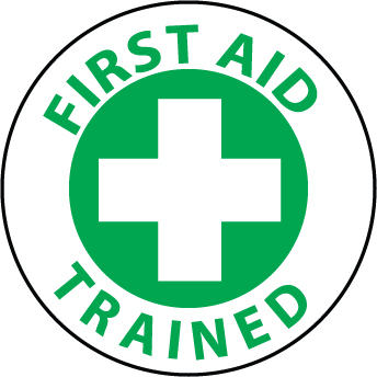 HARD HAT EMBLEM, FIRST AID TRAINED, 2 DIA, PS VINYL