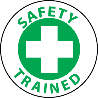 HARD HAT EMBLEM, SAFETY TRAINED, 2 DIA, PS VINYL