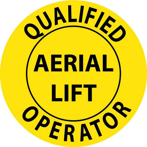 NMC, HH84R, 2" x 2" "Qualified Aerial Lift Operator" Reflective Ps Vinyl Hard Hat Label