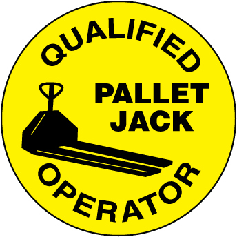 NMC, HH85, 2" x 2" PS Vinyl Hard Hat Emblem w/Legend: "Qualified Pallet Jack Operator"