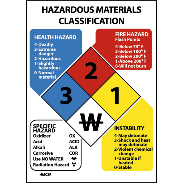NMC, HMC3R, 3-1/2" x 2-1/2" Rigid Plastic Hazardous Materials Classification Sign