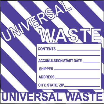 NMC, HW31AL, 6" x 6" Pressure Sensitive Paper Hazmat Label w/Legend: "Hazardous Materials Shipping, Universal Waste Stripes"