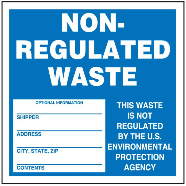 NMC, HW9ALV, 6" x 6" Pressure Sensitive Vinyl Hazmat Label w/Legend: "Non Regulated Waste"