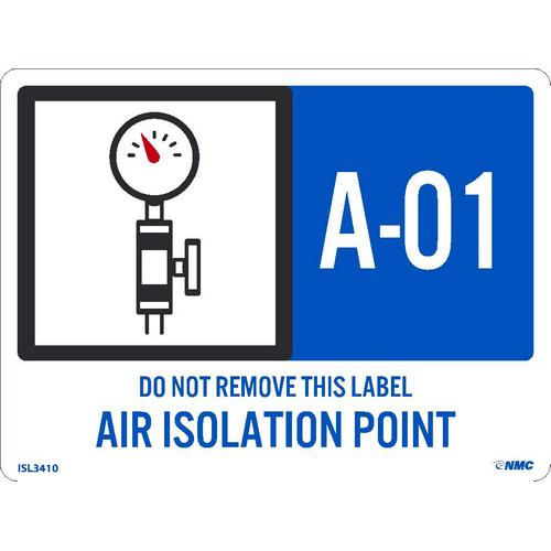 NMC, ISL3410, Label "Air Isolation Point", 3" x 4", Adhesive Backed Vinyl