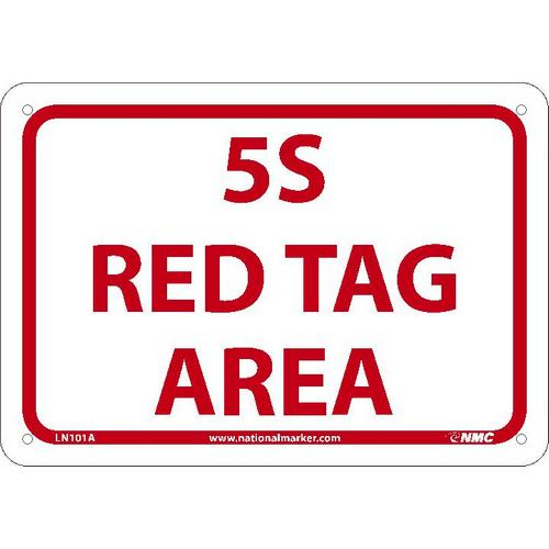 NMC, LN101AB, Aluminum Sign "5S Red Tag Area", 10" x 14"