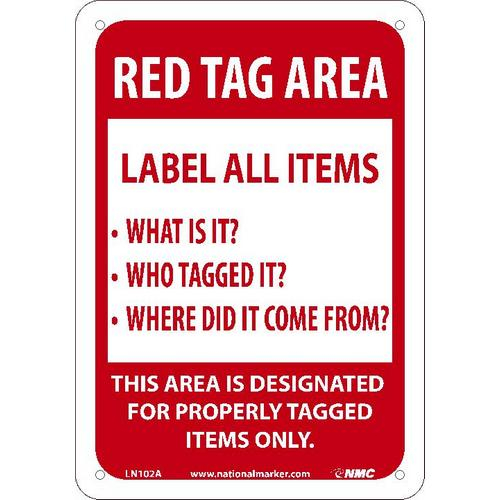 NMC, LN102RC, Rigid Plastic Sign "Red Tag Area Label All Items", 14" x 20"
