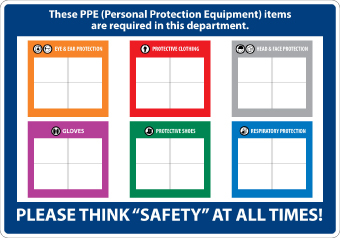 Sign, These Ppe (Personal Protection Equipment) Items Are Required In This Department, 14X20, .125 Pvc