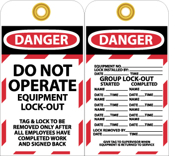 Tags, Lockout, Danger Do Not Operate Equipment Lock-Out. . ., 6X3, Unrip Vinyl