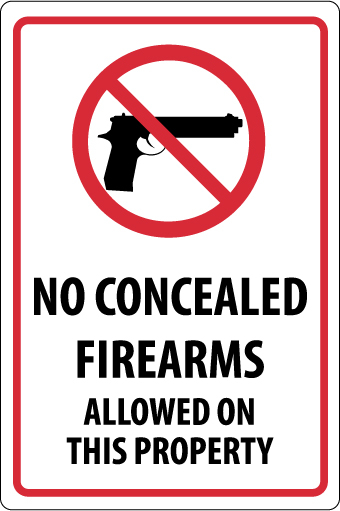 No Concealed Firearms Allowed On This Property, 18X12, .040 Alum