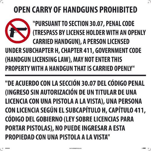 NMC, M461ACP, 30" x 30" Alumiinum Composite Panel "Texas Open Carry Handgun Prohibited" Sign