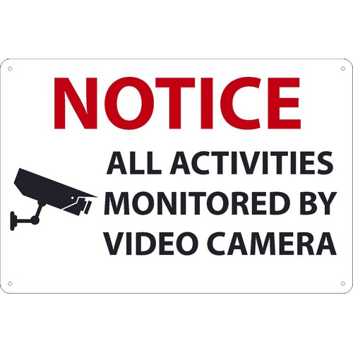 NMC, M497R, Sign "Notice All Activities Monitored By Video Camera",Rigid Plastic, 7" x 10"