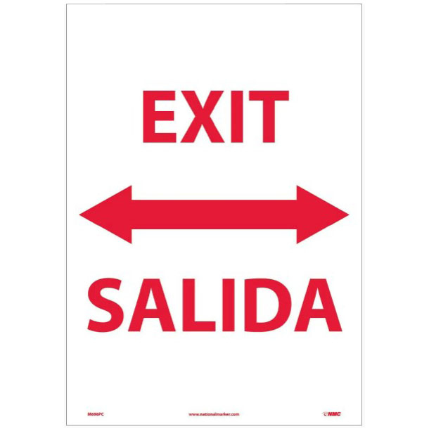 NMC, M696RC, 20" x 14" Exit/Entrance Sign w/Legend: "Exit Double Arrow Bilingual", Rigid Plastic