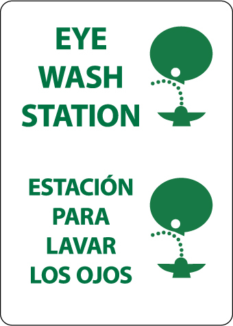 NMC, M736PB, 14" x 10" Emergency and First Aid Sign - "Eye Wash Station (Graphic), Bilingual", PS Vinyl