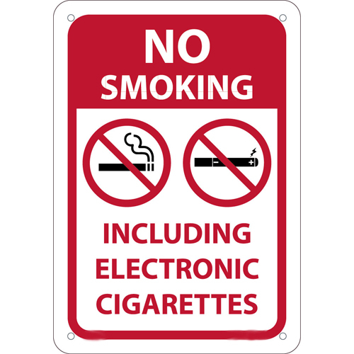NMC, M952R, 10" x 7" Rigid Plastic Sign w/Legend: "No Smoking Including E-Cigarettes"