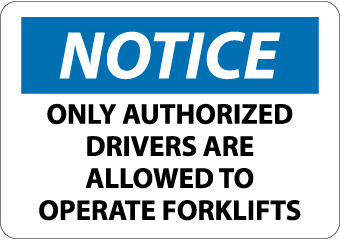 Notice, Only Authorized Drivers Are Allowed To Operate Fork Lifts, 7X10, Pressure Sensitive Vinyl .0045