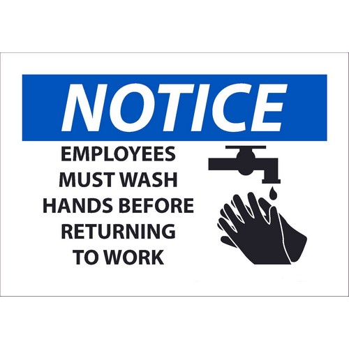 NMC, N269P, Sign "Notice, Employees Must Wash Hands Before Returning to Work", Adhesive Backed Vinyl, 7" x 10"