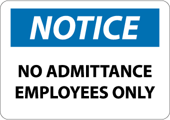 Notice, No Admittance Employees Only, 10X14, Pressure Sensitive Vinyl .0045