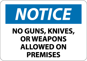 Notice, No Guns, Knives Or Weapons Allowed On Premises, 10X14, Rigid Plastic